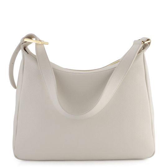 Luxusní dámská kožená kabelka v čistém a elegantním designu od značky Högl je ideálním doplňkem pro každou moderní ženu. Tato kabelka vyniká svou smetanově bílou barvou a kvalitním zpracováním ze strukturované kůže. Zlaté kování dodává kabelce nádech luxusu a elegance. Praktické uzavírání na zip zajišťuje bezpečnost vašich věcí. Vnitřní vybavení zahrnuje jednu zipovou kapsičku na cennosti a dvě otevřené kapsičky na mobil či klíče. Ramenní pásek s možností prodloužení je vzdálený od hrany kabelky cca 32 cm, což zajišťuje pohodlné nošení. Kabelka má rozměry: horní šíře 31 cm, spodní šíře 35 cm, výška 22,5 cm a dno s hloubkou 12 cm. Tento model je ideální pro každodenní nošení i speciální příležitosti.