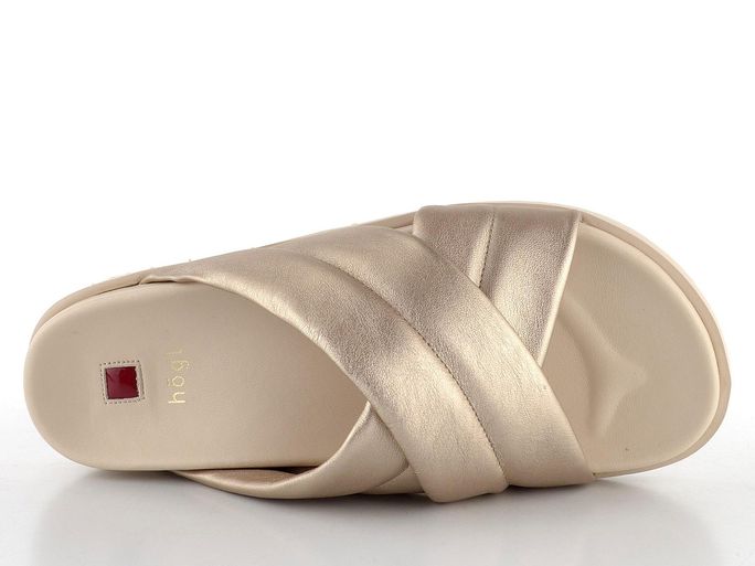 Vstupte do světa módy s pantoflemi od značky Högl, které spojují luxus a pohodlí. Tento model je ideální pro ty, kteří hledají stylovou obuv pro městské prostředí. Díky metalické kůži v odstínu světlé bronzové tyto pantofle zaujmou na první pohled. Extra měkké a široké křížené pásky spolu s anatomicky tvarovanou stélkou zajišťují maximální pohodlí. Celokožená podšívka a lehká rovná podešev přispívají k výjimečnému komfortu při každém kroku. Tyto pantofle, s podpatkem vysokým 2,5 cm, jsou ideální volbou pro ty, kteří chtějí vypadat stylově a cítit se pohodlně zároveň.