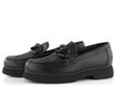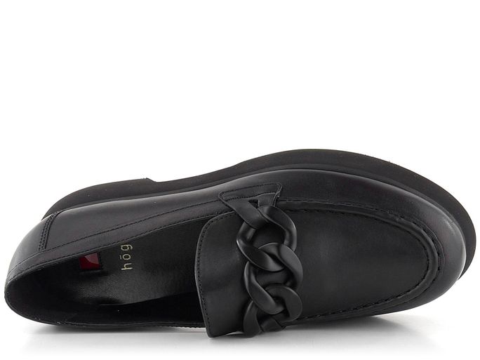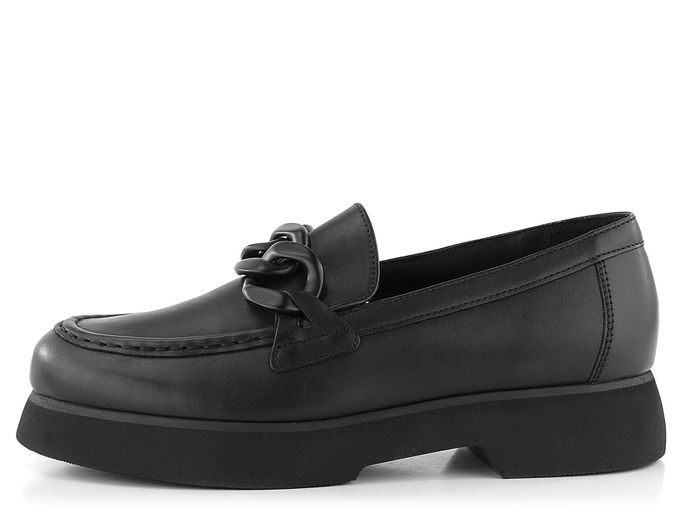 Dámské luxusní mokasíny z hladké kůže v černé barvě s ozdobným kováním na nártu a vysokou podešví.