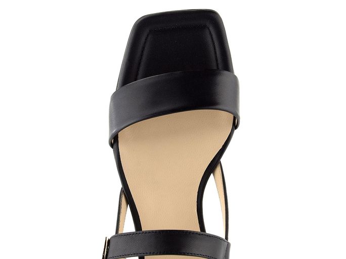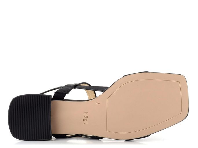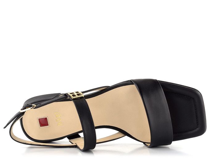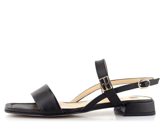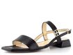 Dámské sandály v černé barvě s nastavitelným patním páskem a nízkým podpatkem.