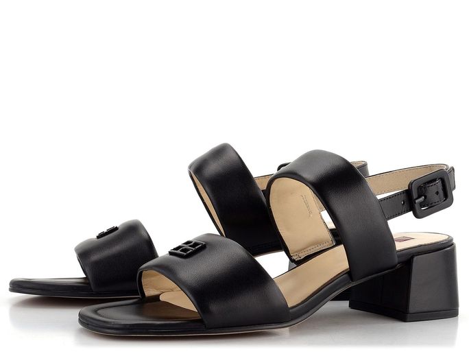 Elegantní a stylové sandály od značky Högl přinášejí luxus a pohodlí v jednom. Tyto dámské sandály jsou ideální volbou pro jarní a letní sezónu. Černá barva v kombinaci s prémiovou hladkou kůží dodává obuvi sofistikovaný vzhled, který je umocněn módní karé špičkou a decentním kovovým logem v černém lesku.