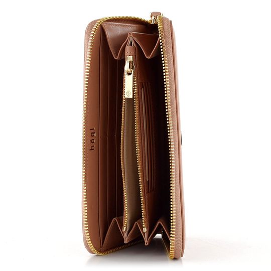 Luxusní dámská peněženka z hladké kůže v mandlově hnědé barvě a se zipovým uzávěrem.
