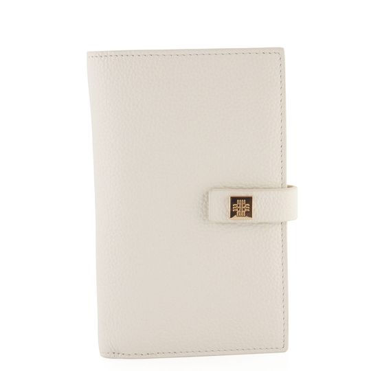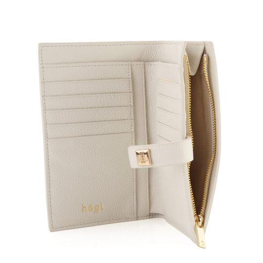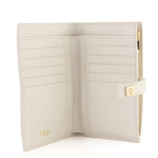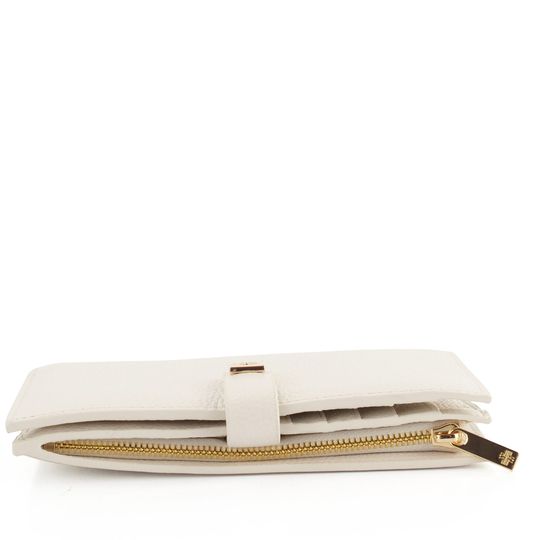 Luxusní dámská peněženka ze strukturované kůže ve smetanově bílé barvě, se zápinkou a zipovou kapsičkou na mince.