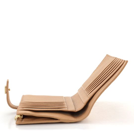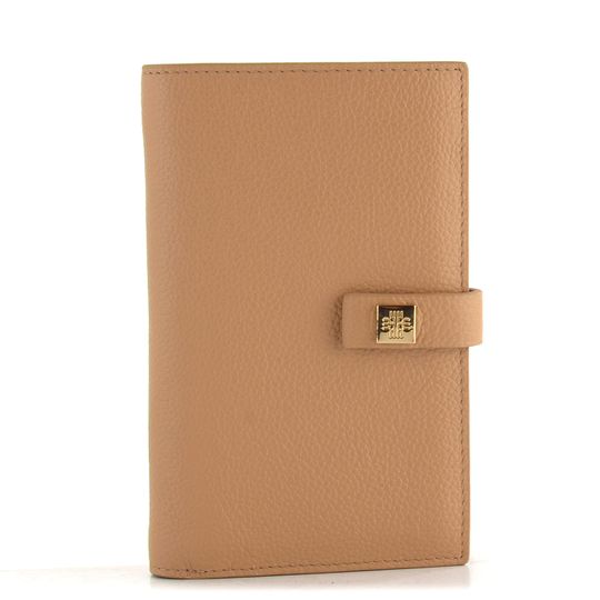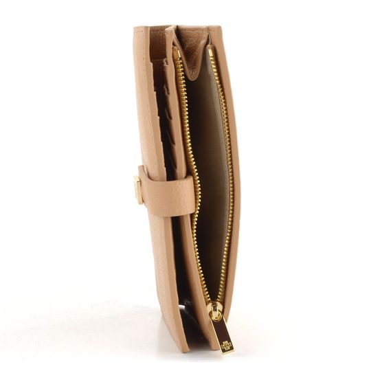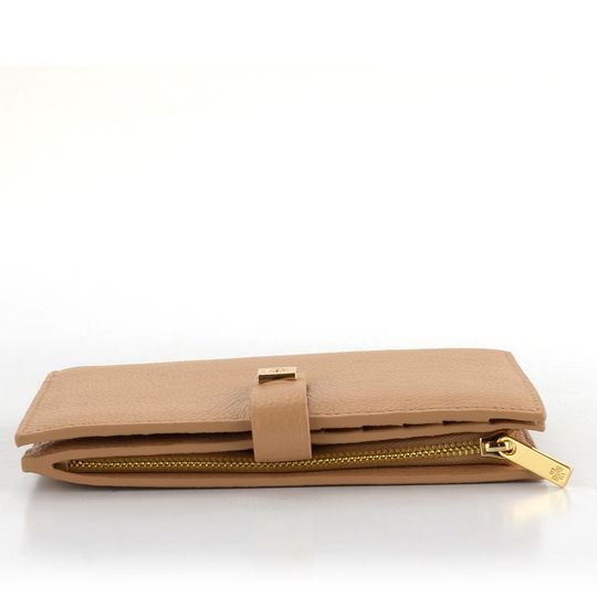 Luxusní dámská peněženka ze strukturované kůže v béžové barvě, se zápinkou a zipovou kapsičkou na mince.