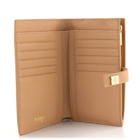 Objevte luxus a eleganci s dámskou peněženkou od značky Högl. Tato peněženka je vyrobena ze strukturované kůže v krásném béžovém odstínu Sahara, což jí dodává sofistikovaný vzhled. Zlaté kování a zápinka na druk zajišťují nejen bezpečnost, ale i stylový design.