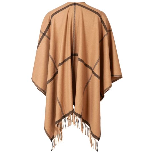 Luxusní vlněný pléd - pončo s příměsí kašmíru v oříškově hnědé barvě s tmavě hnědým čtvercovým vzorem.