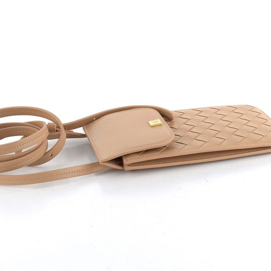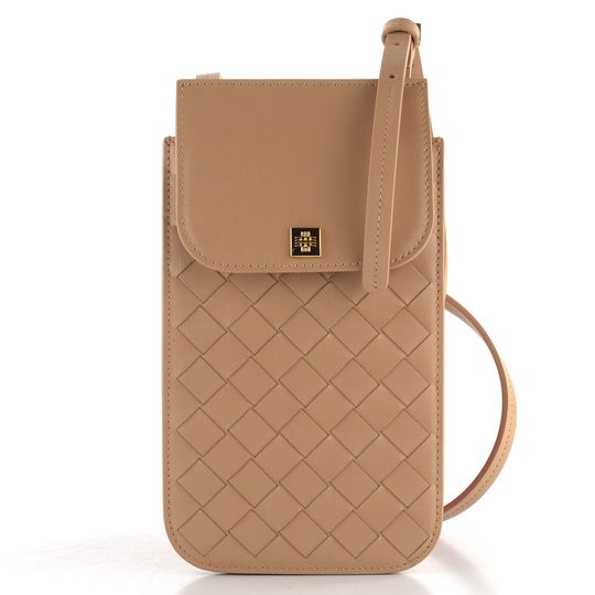 Na přední straně je hladká prémiová kůže proplétaná do vzoru, doplněná jemným logem značky. Kovové komponenty ve zlaté barvě dodávají punc luxusu. Praktická klopa se uzavírá na kovový druk, pod kterou se skrývá kapsička s přihrádkou na platební kartu. Díky nastavitelnému ramennímu pásku můžete kabelku nosit klasicky nebo jako crossbody. Rozměry 11 cm na šířku, 20 cm na výšku a hloubka 1 cm zajišťují, že se vejde vše potřebné, a přitom zůstává kompaktní.