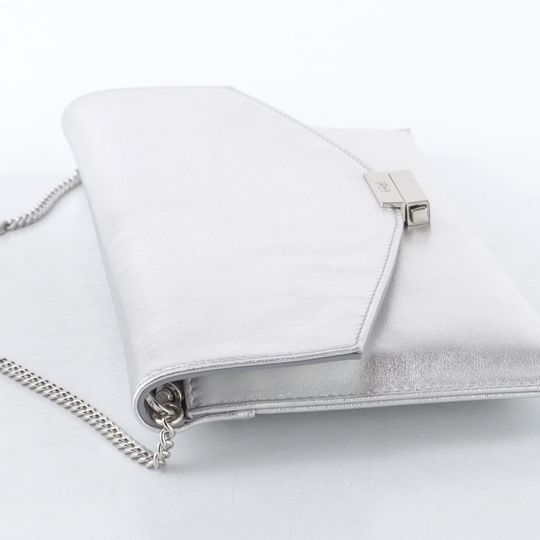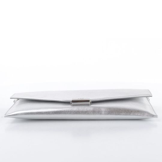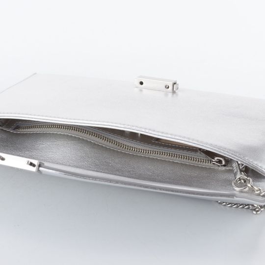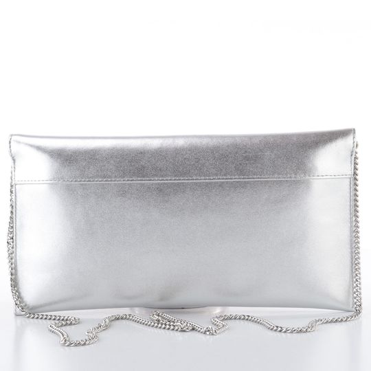 Dámské kožené psaníčko v metalické stříbrné barvě s přídavným řetízkem.
