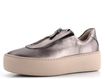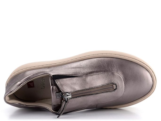 Dámské luxusní tenisky od značky Högl kombinují styl a pohodlí. Tyto metalické boty v odstínu tmavé bronzové "gun" jsou vyrobeny z kvalitní hladké kůže a nabízejí prostorný kulatý střih. Místo tradičního šněrování mají funkční zip a vedle něj všité pruženky, což zajišťuje snadné obouvání a vyšší komfort. Uvnitř najdete kombinaci hladké kůže a textilní froté podšívky, která spolu s měkkou stélkou a extra měkčeným jazykem a kotníkovým lemem poskytuje maximální pohodlí během nošení. Lehká a vysoká platforma v kontrastní pudrové barvě dodává botám moderní vzhled a zajišťuje stabilitu. Tento model je ideální volbou pro podzimní a zimní sezónu 2023/24.