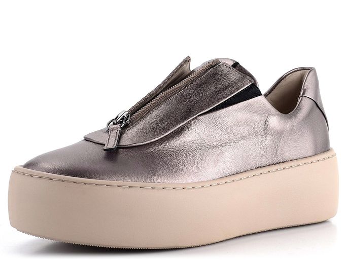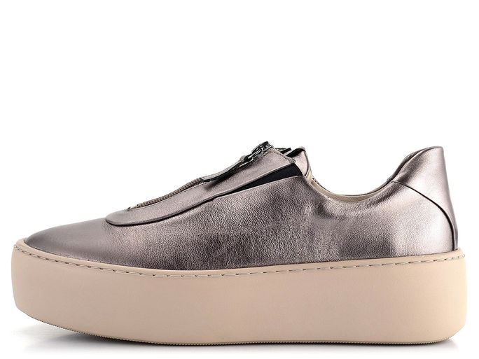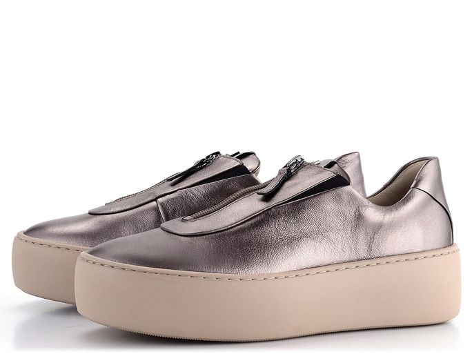 Luxusní kožené tenisky v metalické barvě a s módním zipem místo šněrování.