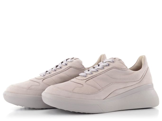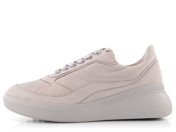 Sportovní městské polobotky na platformě, z luxusní nubukové kůže v popelavě šedé barvě.