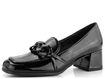 Dámské originálně pojaté mokasíny v černé barvě, s karé špičkou a širokým stabilním podpatkem.