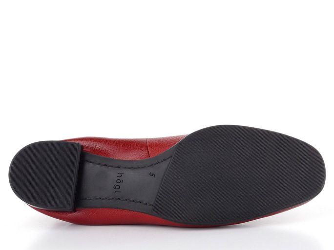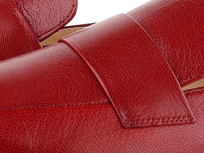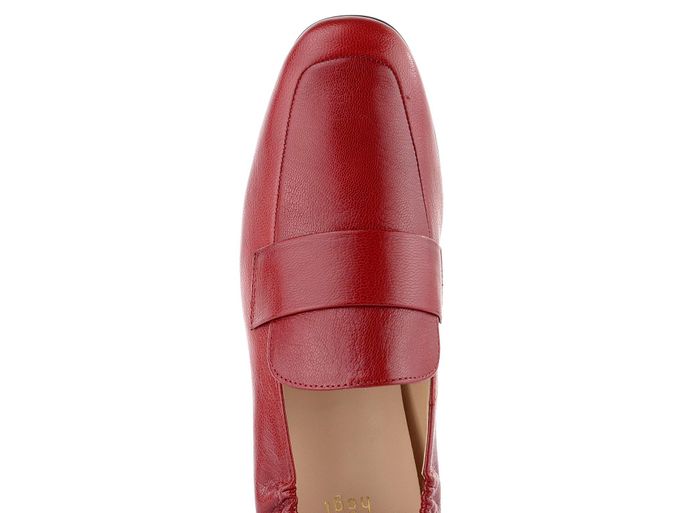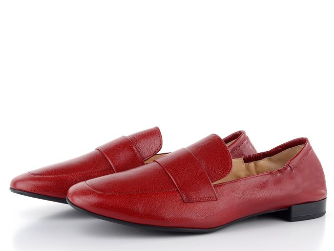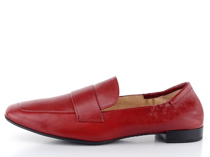 Dámské luxusní mokasíny z jemné kůže v červeném odstínu se všitými pružinkami v patní části.