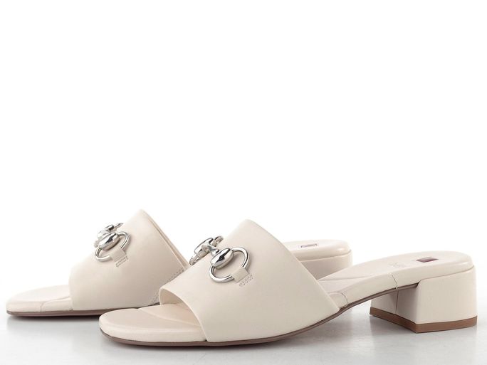 Högl pantofle na podpatku v jemné smetanové barvě představují ideální volbu pro ženy, které hledají spojení elegance a pohodlí. Tyto stylové páskové boty jsou vyrobeny z prémiové hladké kůže, což zajišťuje jejich dlouhou životnost a komfort při nošení. Kulatější tvar špičky a příjemně měkká prošívaná stélka dodávají pocit lehkosti, zatímco široký potažený podpatek o výšce 4 cm zaručuje stabilitu. S ozdobnou kovovou aplikací ve stříbrné barvě a pruženkou na vnitřní straně pásku jsou tyto pantofle nejen praktické, ale i velmi módní. Skvěle se hodí do města, na lehkou procházku či do kanceláře.