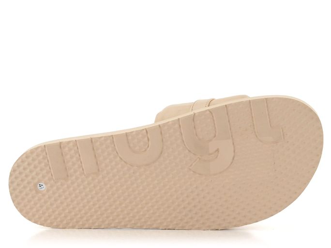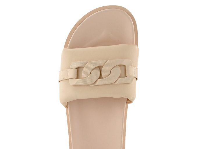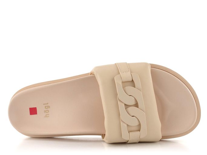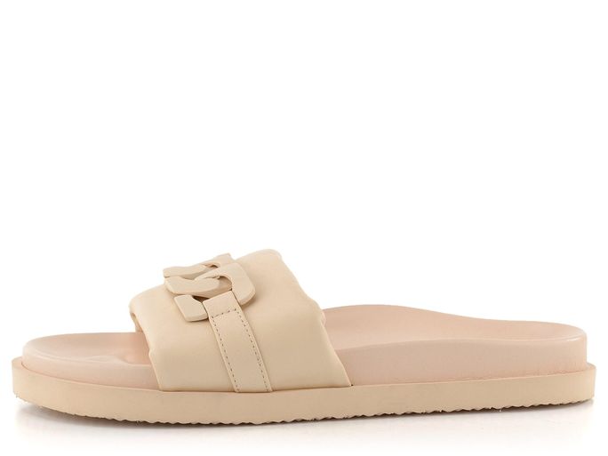 Dámské módní, anatomicky tvarované a pohodlné pantofle v béžovém provedení s kovovou ozdobou.