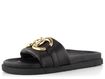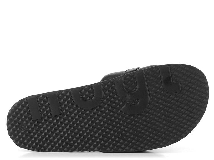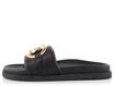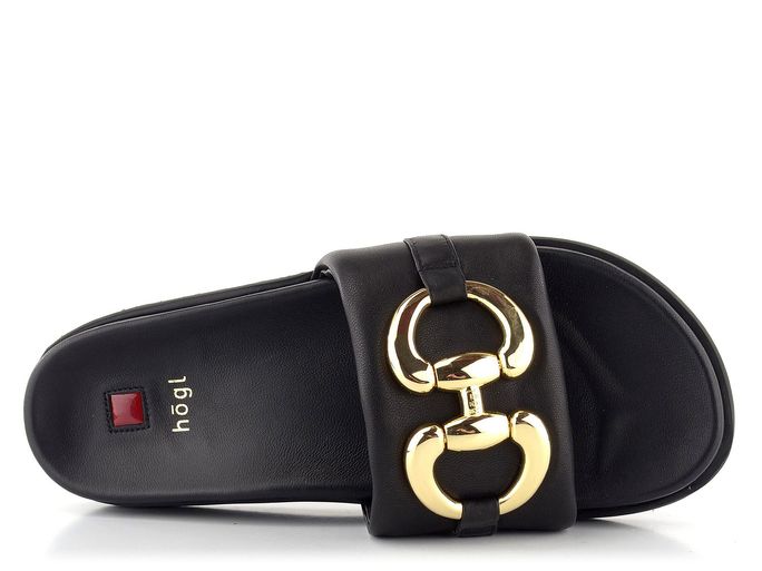 Dámské módní, anatomicky tvarované a velmi pohodlné pantofle v černé barvě s kovovou ozdobou.