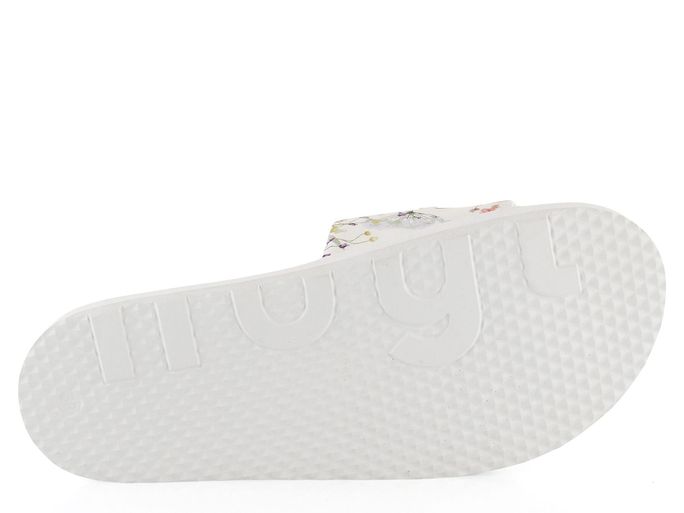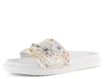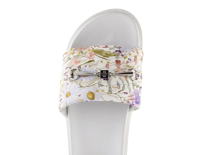 Dámské módní, anatomicky tvarované a velmi pohodlné pantofle v bílé barvě s barevným květinovým potiskem.