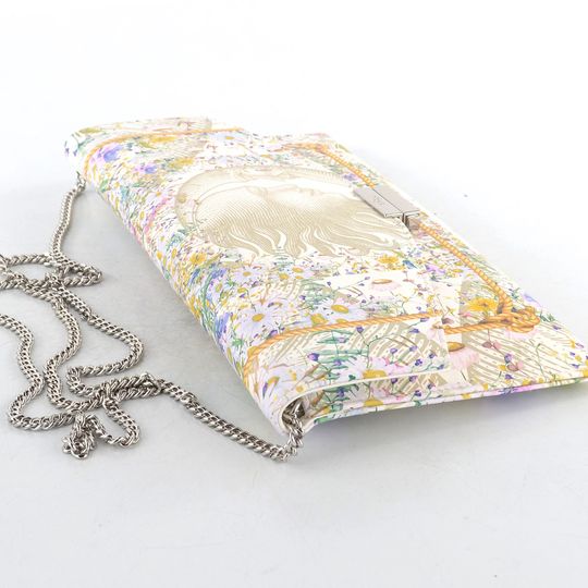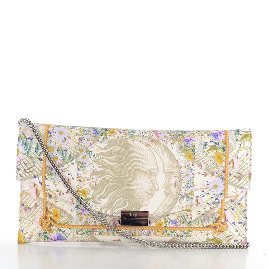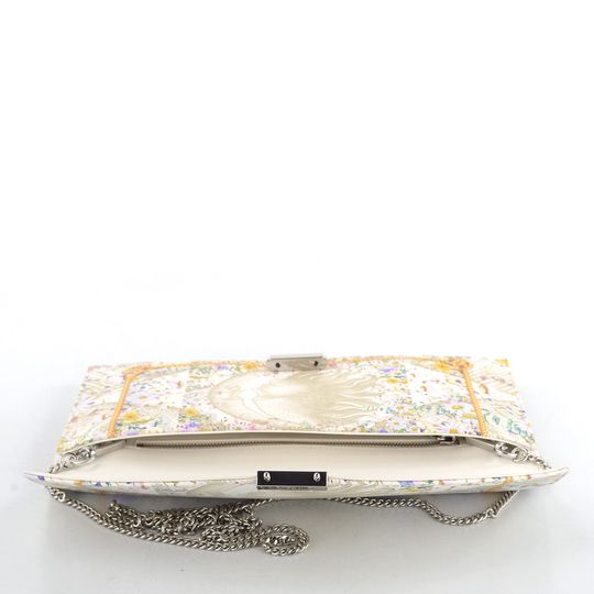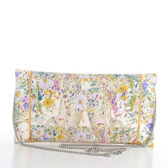 Dámské kožené psaníčko s barevným květinovým vzorem a přídavným řetízkem.