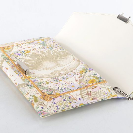 Pokud hledáte elegantní doplněk, který podtrhne váš styl a přitáhne pozornost, dámské kožené psaníčko od značky Högl je ideální volbou. Vyrobeno z hladké kůže, kombinuje odraženou bílou barvu s motivy slunce, měsíce a barevného lučního kvítí. Tento unikátní design je doplněn kováním ve stříbrné barvě, což dodává psaníčku sofistikovaný vzhled. Praktická klopa se zavírá na kovový zámeček, který se snadno otevírá stisknutím po stranách. Uvnitř najdete zipovou kapsičku na cennosti a odepínatelný kovový řetízek o délce 110 cm. Psaníčko o rozměrech 26,5 cm na šířku, 14 cm na výšku a hloubkou 2 cm je nejen stylové, ale i funkční. Perfektní pro jarní a letní sezónu roku 2025.