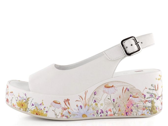 Zažijte pohodlí a styl v jednom s dámskými sandály od značky Högl. Tento oblíbený model je ideální pro ženy, které hledají eleganci a komfort na jarní a letní dny. Sandály jsou vyrobeny z jemné hladké kůže a nabízejí pohodlný střih s hranatou špičkou. Lehce odražená bílá barva dodává botám jemný, ale výrazný vzhled. Patní pásek s pružným poutkem umožňuje snadnou regulaci délky, což zajišťuje perfektní přizpůsobení. Vysoká platforma s klínkem, potažená kůží s barevným potiskem lučního kvítí, přidává na originalitě a dodává sandálům jedinečný vzhled. S celokoženou podšívkou a měkčenou stélkou jsou tyto sandály nejen stylové, ale i nesmírně pohodlné.