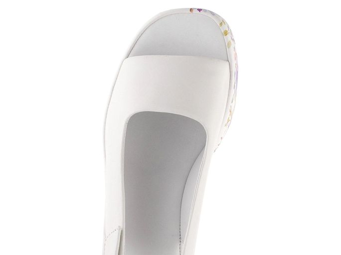 Luxusní kožené dámské sandálky v bílé barvě s barevným potaženým klínkem.