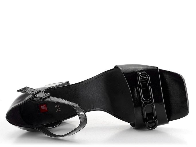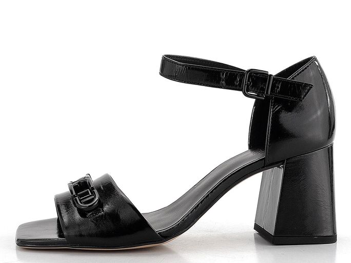 Dámské luxusní sandály z lakované kůže v oblíbené černé barvě na vysokém stabilním podpatku.