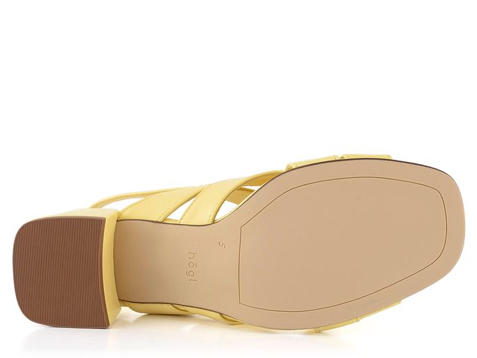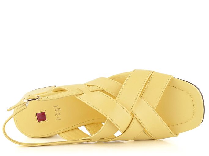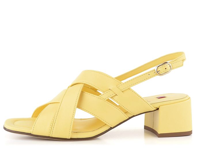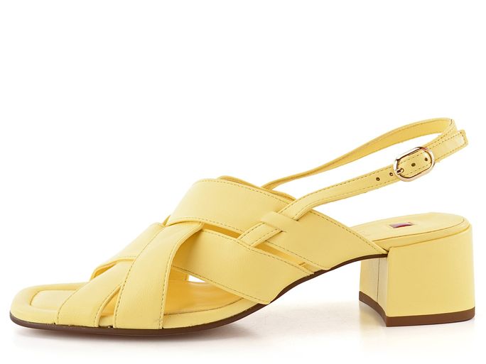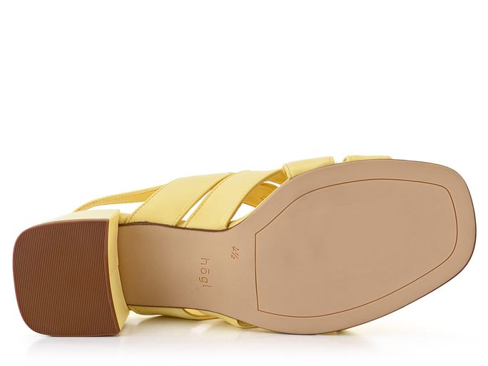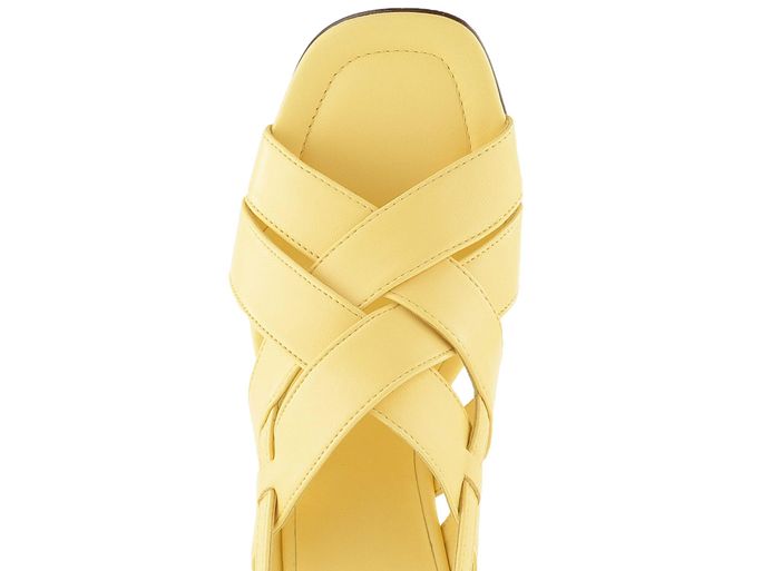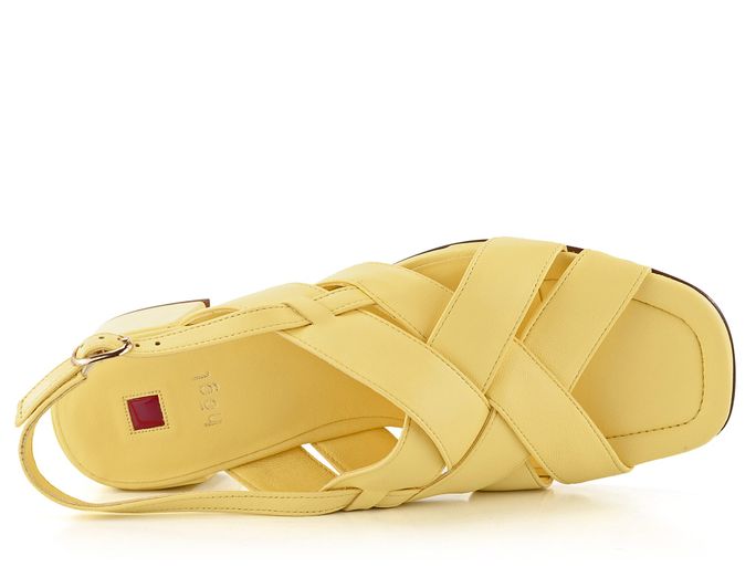 Dámské luxusní žluté sandály s proplétanými pásky a se středně vysokým, pohodlným podpatkem.