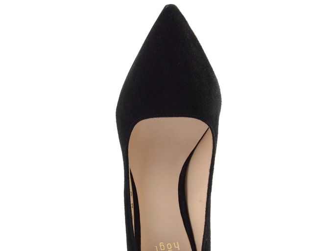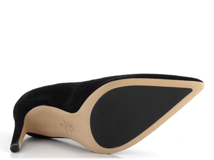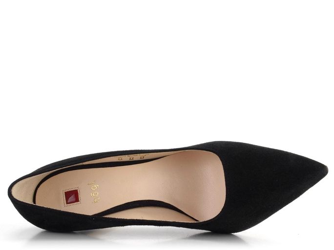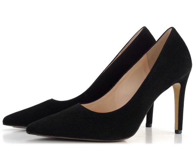 Dámské elegantní černé lodičky ze semišové kůže na vysokém jehlovém podpatku.