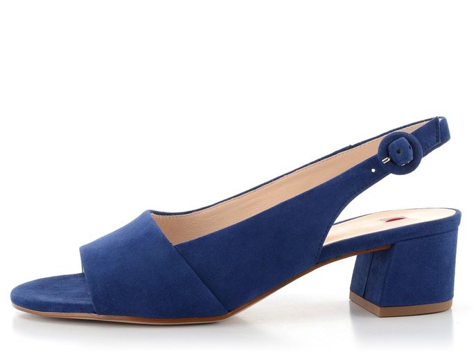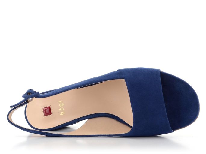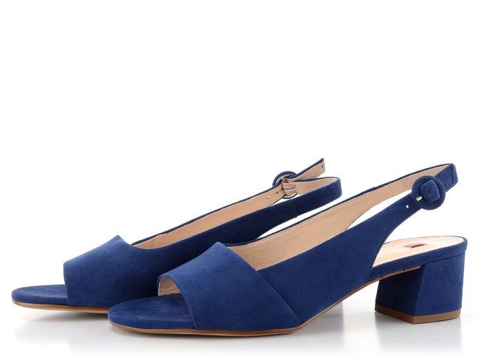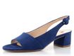 Dámské semišové sandály v královské modré barvě a se stabilním širším podpatkem.