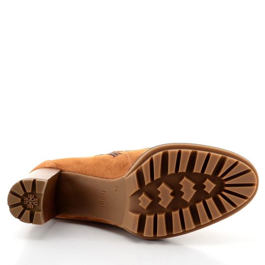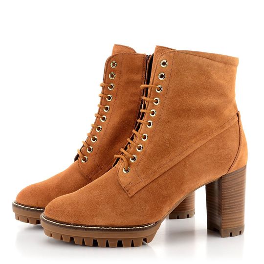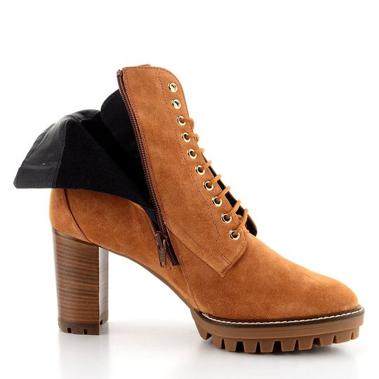 Dámský elegantní kotník z velurové kůže s mírně teplou podšívkou a podpatkem v dekoru dřeva.