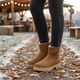Na vnitřní straně se nachází zip pro snadné obutí, což oceníte při každodenním používání. Uvnitř je teplá podšívka z vlněné střiže a vyjímatelná vložka s termoizolační fólií, která chrání před chladem. Lehká a vysoká podešev s hrubým vzorkem a širokým podpatkem poskytuje stabilitu a pohodlí. Tento model s výškou kotníku 13 cm je perfektní volbou pro podzimní a zimní dny.