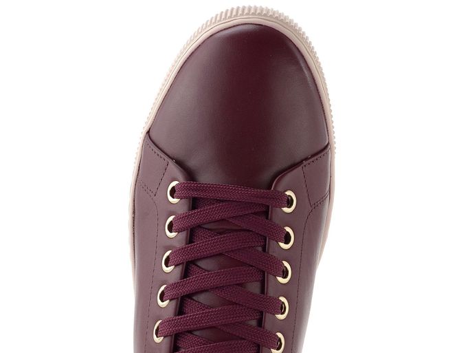 Módní kožené polobotky na platformě v krásné vínové barvě, se šněrováním a vyjímatelnou vložkou.