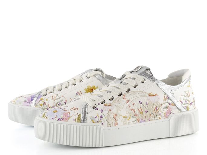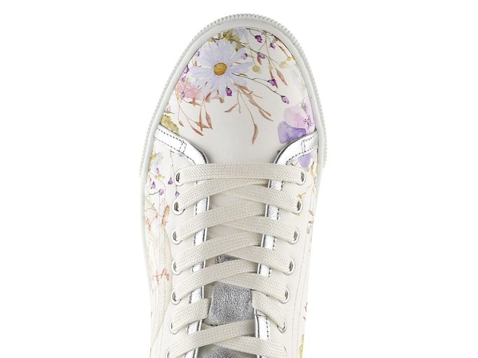 Exkluzivní kožené tenisky na platformě v bílém provedení s barevným květinovým potiskem a vyjímatelnou vložkou.
