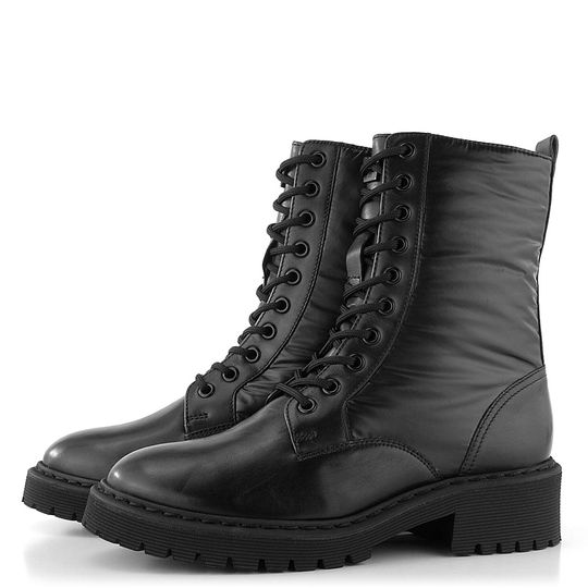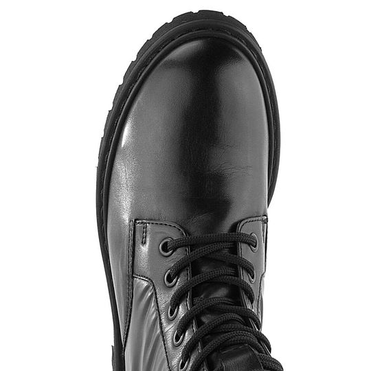 Dámský kotník v módní kombinaci materiálů a na vyšší podešvi s hrubým vzorkem.