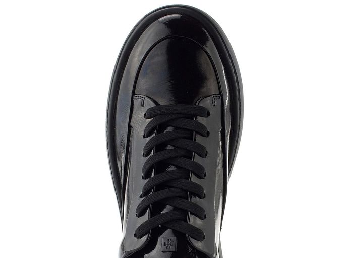 Luxusní šněrovací tenisky z lesklé kůže v černé barvě s vysokou módní platformou.