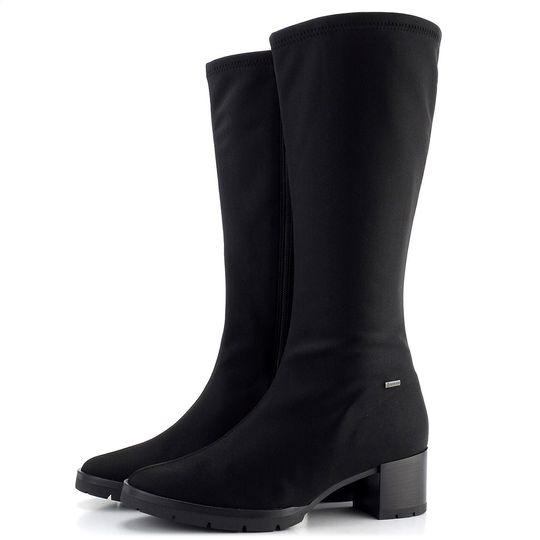 Kozačky mají elegantní střih s užší kulatou špičkou a praktický postranní zip, který usnadňuje obouvání. Výška kozaček je 37 cm a obvod lýtka 39 cm, což je ideální pro standardní typ lýtka. Stabilní latexová podešev s hrubým vzorkem zajišťuje bezpečný krok. Tyto kozačky jsou perfektní volbou pro každodenní nošení ve městě i na formální akce.