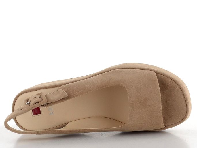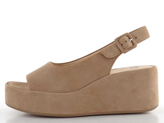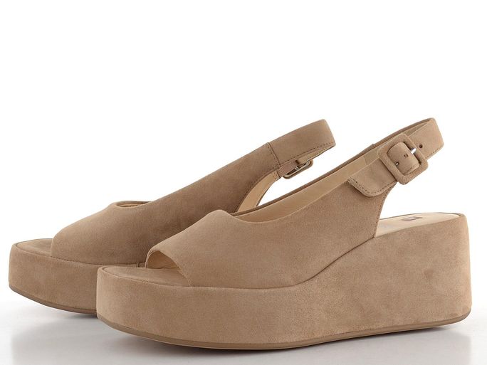 Zažijte letní pohodlí s dámskými sandály na klínku od značky Högl. Tento model je vyroben z poddajné semišové kůže v elegantním odstínu taupe, který se snadno kombinuje s různými outfity. Sandály mají hranatější špičku, která kopíruje tvar prstů, a celokoženou podšívku pro maximální komfort. Díky měkčené stélce a patnímu pásku s pružným poutkem se budete cítit pohodlně po celý den. Vysoká platforma s klínkem, potažená kůží, dodává těmto sandálům moderní vzhled a 7 cm vysoký podpatek zajišťuje elegantní siluetu. Perfektní volba pro ženy, které hledají styl a pohodlí v jednom.