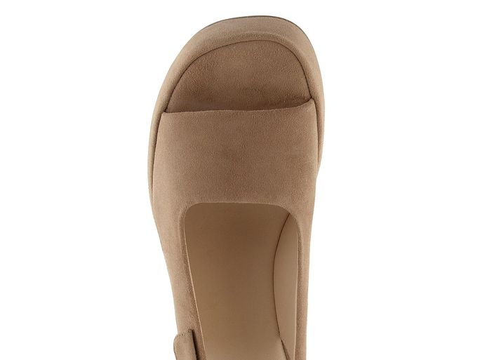 Luxusní dámské sandálky ze semišové kůže na vysoké platformě s klínkem.