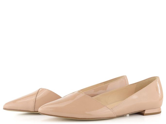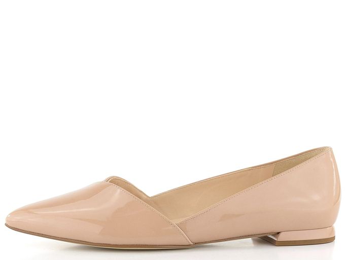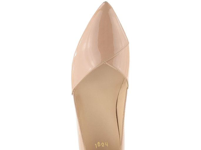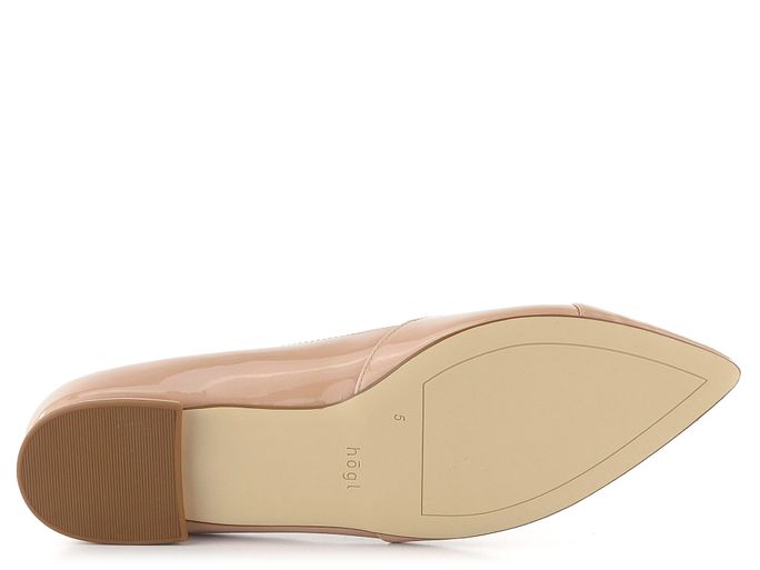 Elegantní baleríny od značky Högl v béžové barvě (odstín nude) představují perfektní volbu pro ženy, které hledají stylovou a pohodlnou obuv. Tyto baleríny se vyznačují špičatým střihem a překládanou špičkou s vykrojením na boku, což dodává obuvi moderní a módní vzhled. Vyrobeny jsou z kvalitní a pevné lakované kůže, která zaručuje dlouhou životnost a elegantní vzhled. Uvnitř najdete celokoženou podšívku a měkkou stélku, která poskytuje maximální pohodlí. Hladká podešev s nízkým, 1,3 cm vysokým podpatkem zajišťuje stabilitu a komfort při nošení. Tento model je ideální do města, kanceláře i na formální příležitosti. Poznámka: Při nošení může dojít k přirozenému zvrásnění materiálu v namáhaných místech, což je typická vlastnost kůže, nikoliv vada.