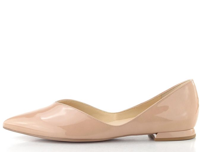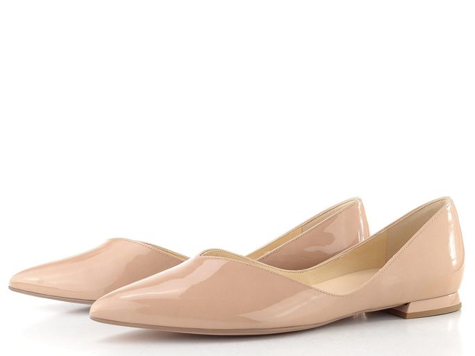 Elegantní baleríny od značky Högl v oblíbené béžové barvě jsou ideální volbou pro každou ženu, která hledá styl a pohodlí. Tyto otevřené boty s špičatým střihem jsou vyrobeny z kvalitní lakované kůže, což zaručuje jejich trvanlivost a luxusní vzhled. Vykrojení na boku a elegantní špička dodávají těmto balerínám moderní a slušivý vzhled.