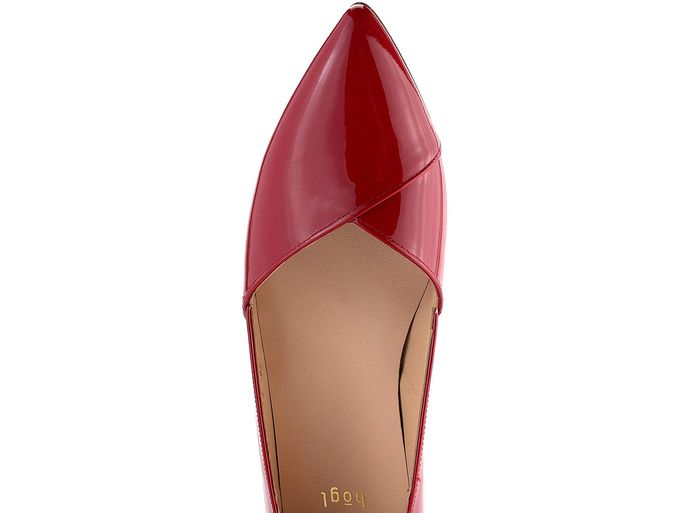Elegantní baleríny od značky Högl v sytě červené barvě přináší dokonalou kombinaci stylu a pohodlí. Tyto baleríny jsou vyrobeny z kvalitní lakované kůže, která zaručuje trvanlivost a pevnost. Špičatý střih a překládaná špička s vykrojením na boku dodávají botám moderní a slušivý vzhled. Uvnitř najdete celokoženou podšívku a příjemně měkkou stélku, která zaručuje komfort i při delším nošení. Nízký podpateček o výšce 1,3 cm a hladká podešev přispívají k celkovému pohodlí. Tyto baleríny jsou ideální volbou pro jaro a léto, ať už do kanceláře, na lehkou procházku nebo formální příležitost. Poznámka: Přirozené zvrásnění materiálu v namáhaných místech není vadou, ale typickou vlastností kůže.