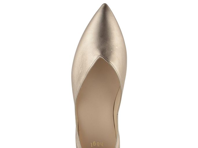 Dámské baleríny od značky Högl představují elegantní spojení stylu a komfortu. Vyrobeny z kvalitní metalické kůže, tyto boty vynikají svým světlým bronzovým až platinovým odstínem, který dodává každému kroku nádech luxusu. Špičatý střih a vykrojení na boku odhalují chodidlo, což působí velmi žensky a sofistikovaně. Vnitřek je vybaven celokoženou podšívkou a měkkou stélkou, což zajišťuje pohodlí po celý den. Hladká podešev s nízkým podpatečkem o výšce 1,3 cm je ideální pro celodenní nošení. Tyto baleríny jsou perfektní volbou pro každodenní městský styl i formální příležitosti.