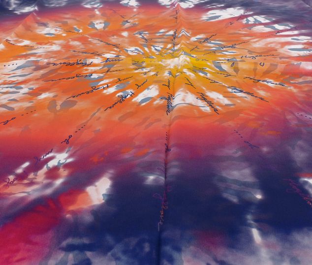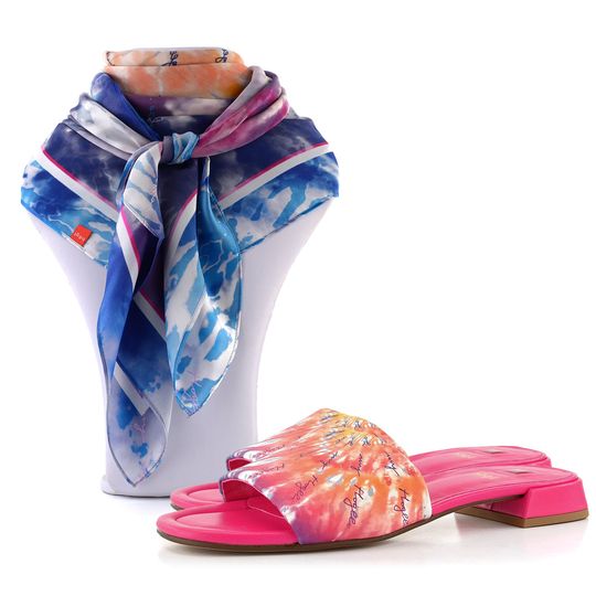 Luxusní hedvábný šátek s batikovaným a krásným pestrobarevným vzorem.