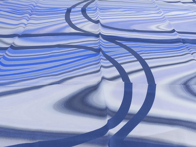 Luxusní hedvábný šátek s batikovaným vzorem v pěkné modro-švestkové barevné kombinaci.
