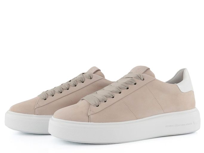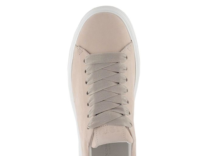 Dámské kožené tenisky ve světlé béžové barvě a na vysoké, rovné podešvi.