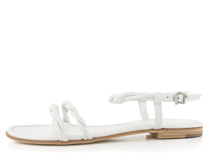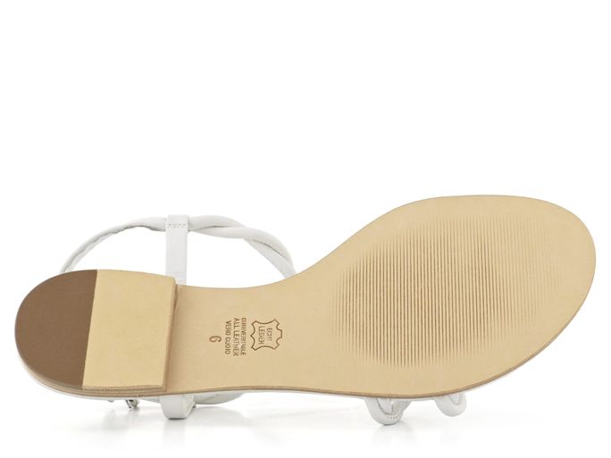 Dámské luxusní kožené sandálky v bílé barvě se stáčenými pásky a s koženou podešví.