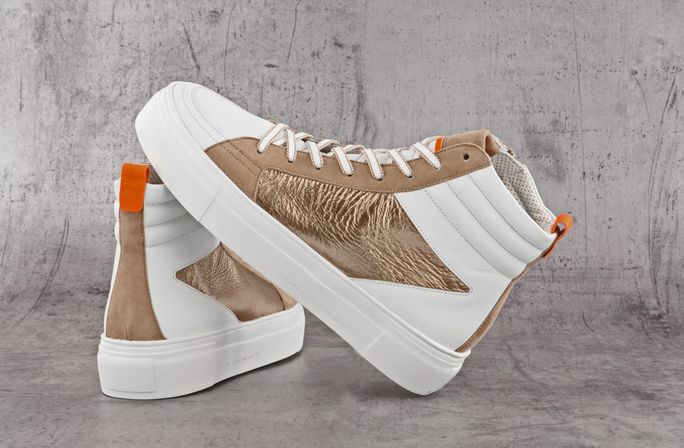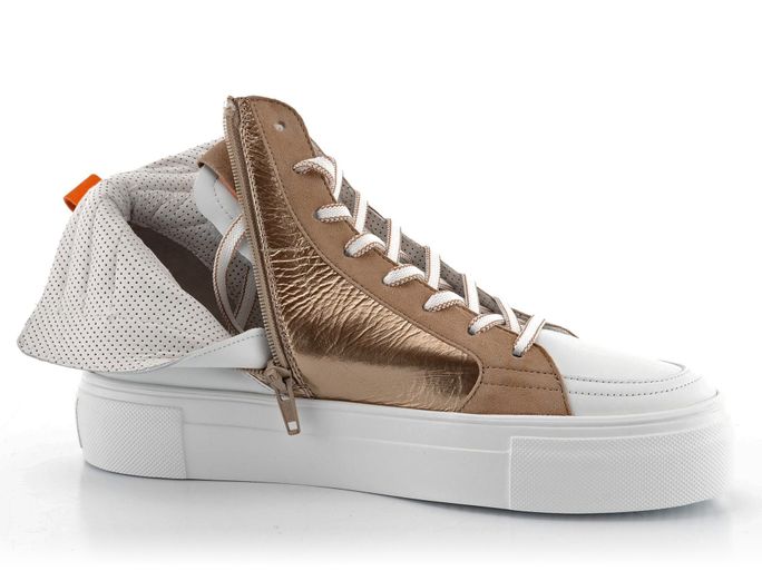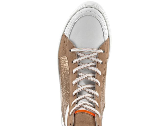 Dokonale sladěný dámský sneakers kotník na rovné lehké podešvi s podšívkou z perforované kůže.