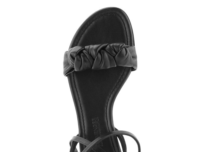 Dámské luxusní kožené sandálky v černé barvě s ozdobnými uzly a s koženou podešví.