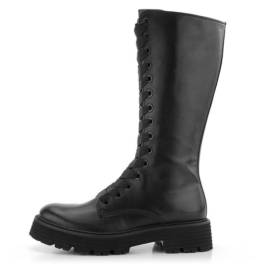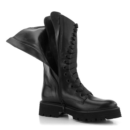 Dámské luxusní polokozačky v celokoženém provedení a na vysoké módní podešvi s hrubým vzorkem.