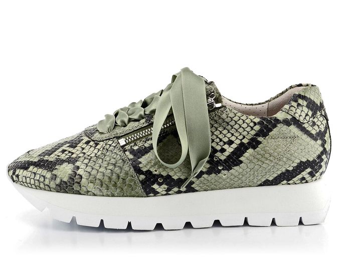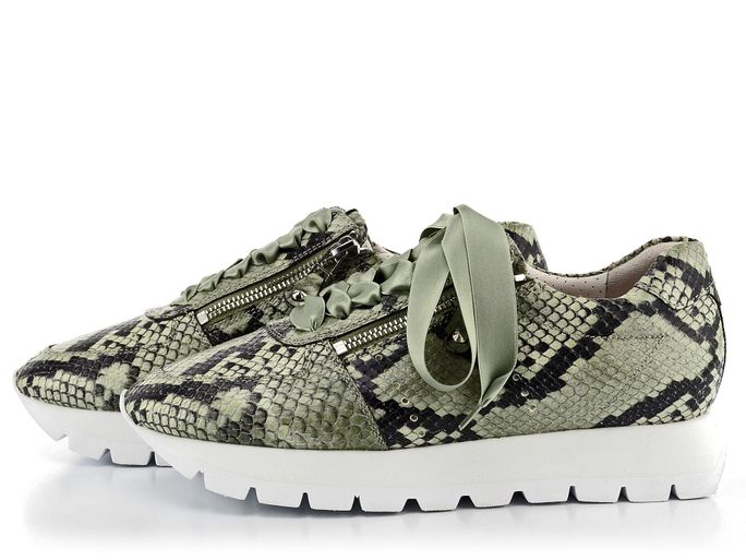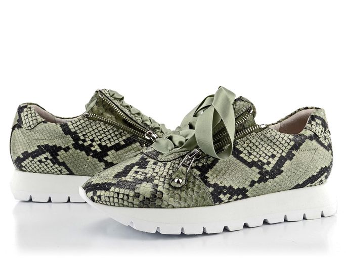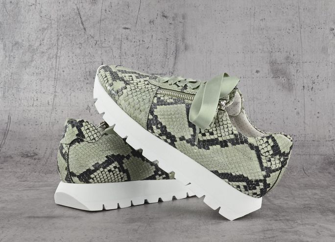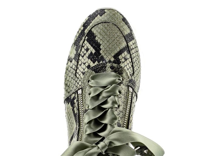 Módní dámské polobotky s hadinkovou strukturou v krásném mátově zeleném odstínu se sladěnými saténovými šněrovadly.